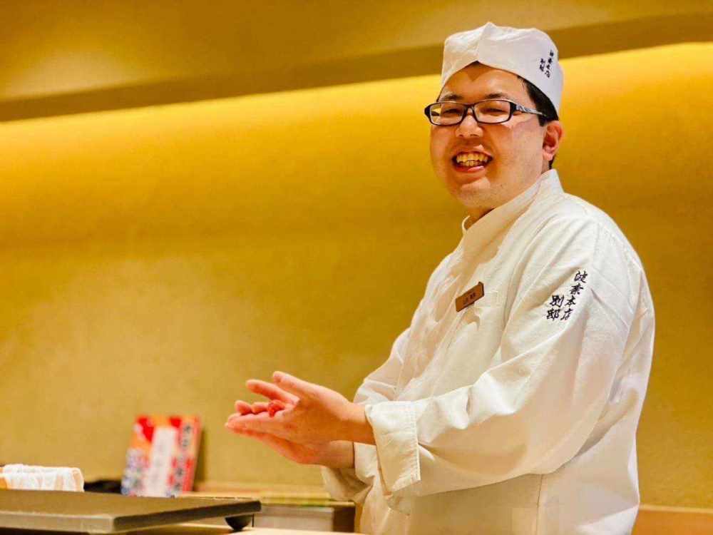 カウンターに立って。お寿司を握るのは社員なので
